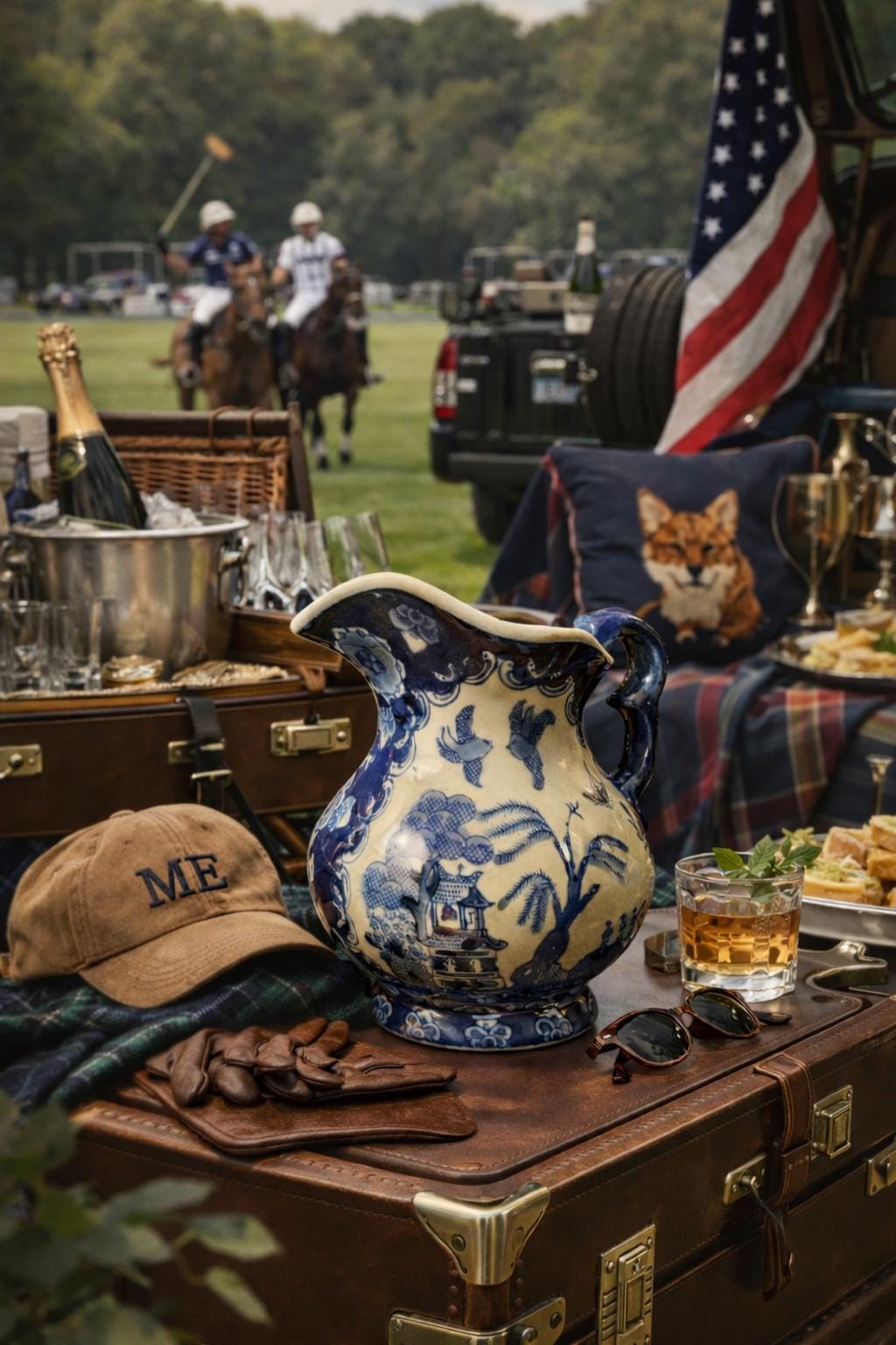 Antique Blue & White Chinoiserie Ironstone Pitcher