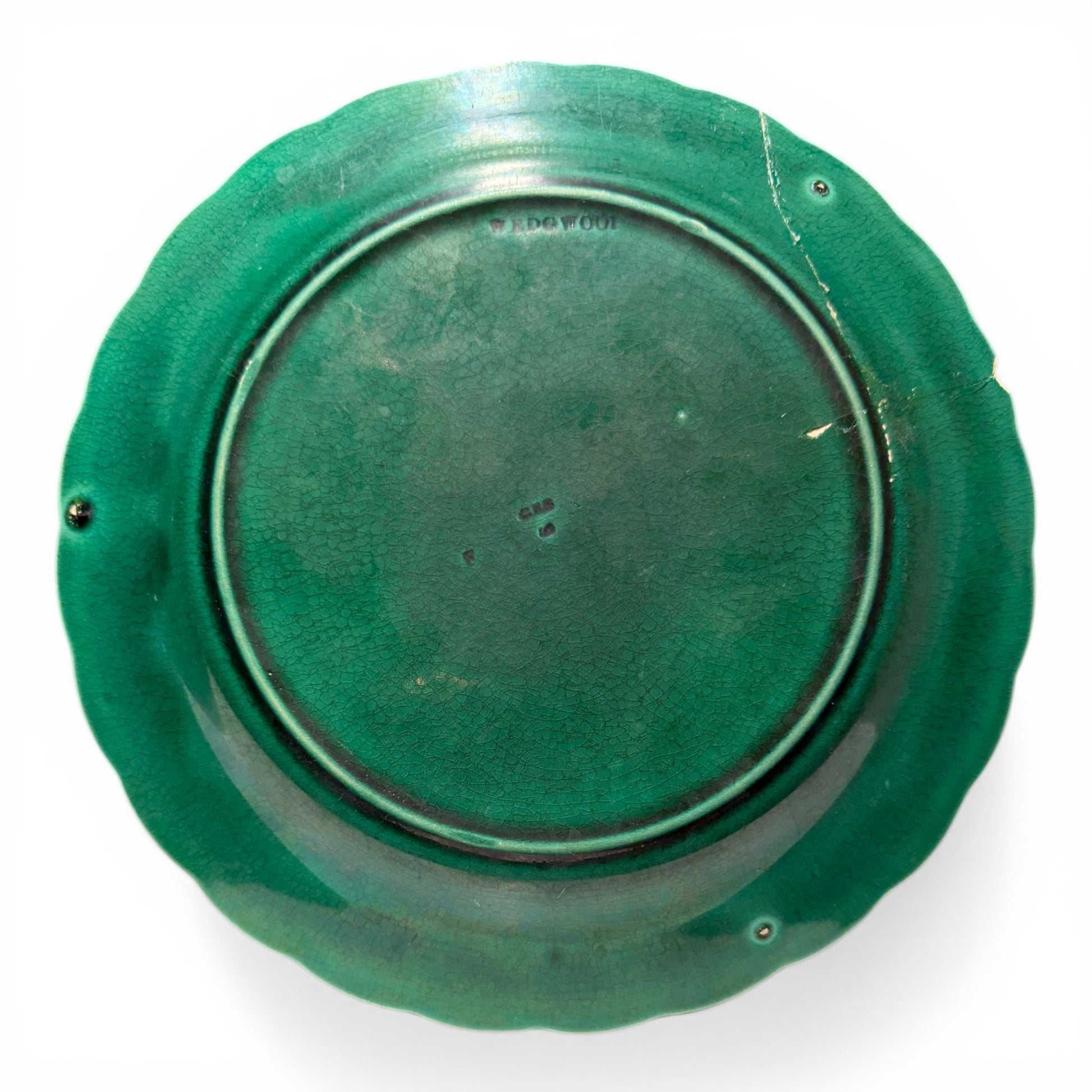 Additional age-appropriate wear is present, including typical crazing to the glaze consistent with antique majolica.