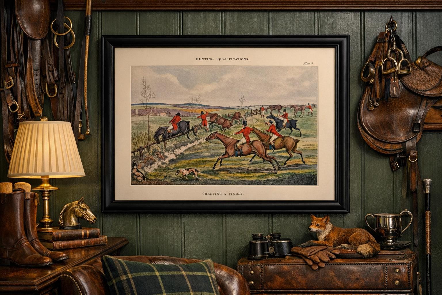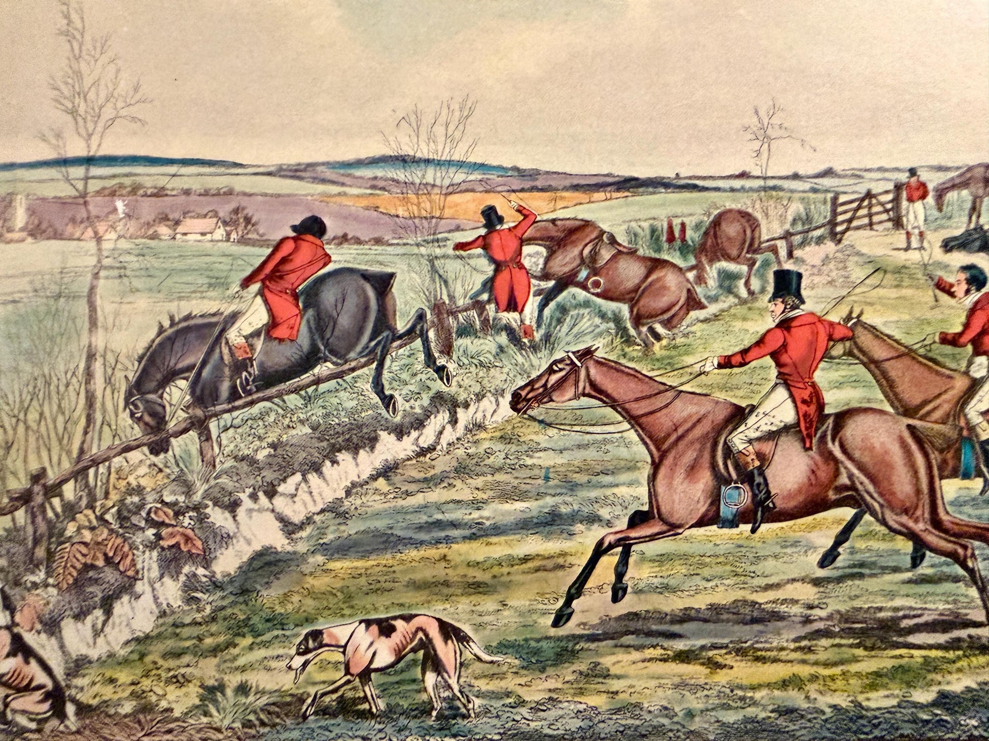 Antique Henry Thomas Aiken Fox Hunting Engraving Lithograph Print - "Hunting Qualifications: Creeping a Finish"
