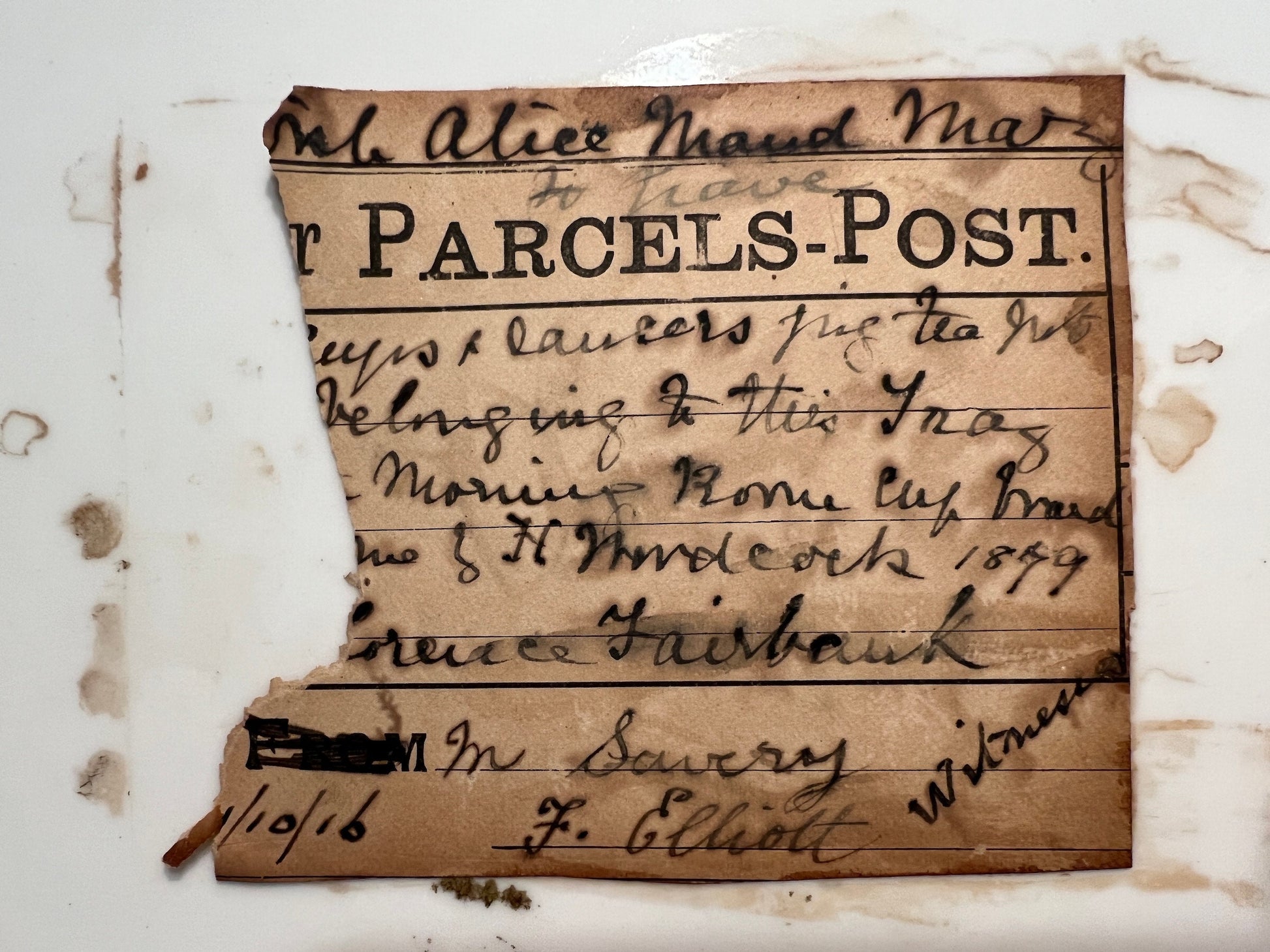 Date supported by the retained original parcels-post label.