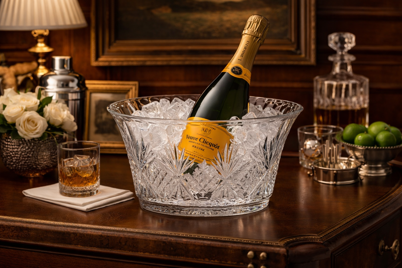 Use as a centerpiece filled with citrus or seasonal fruit, or style on a console or dining table to reflect light and add quiet elegance. Also lovely as a serving bowl for chilled bottles or decorative accents during entertaining.