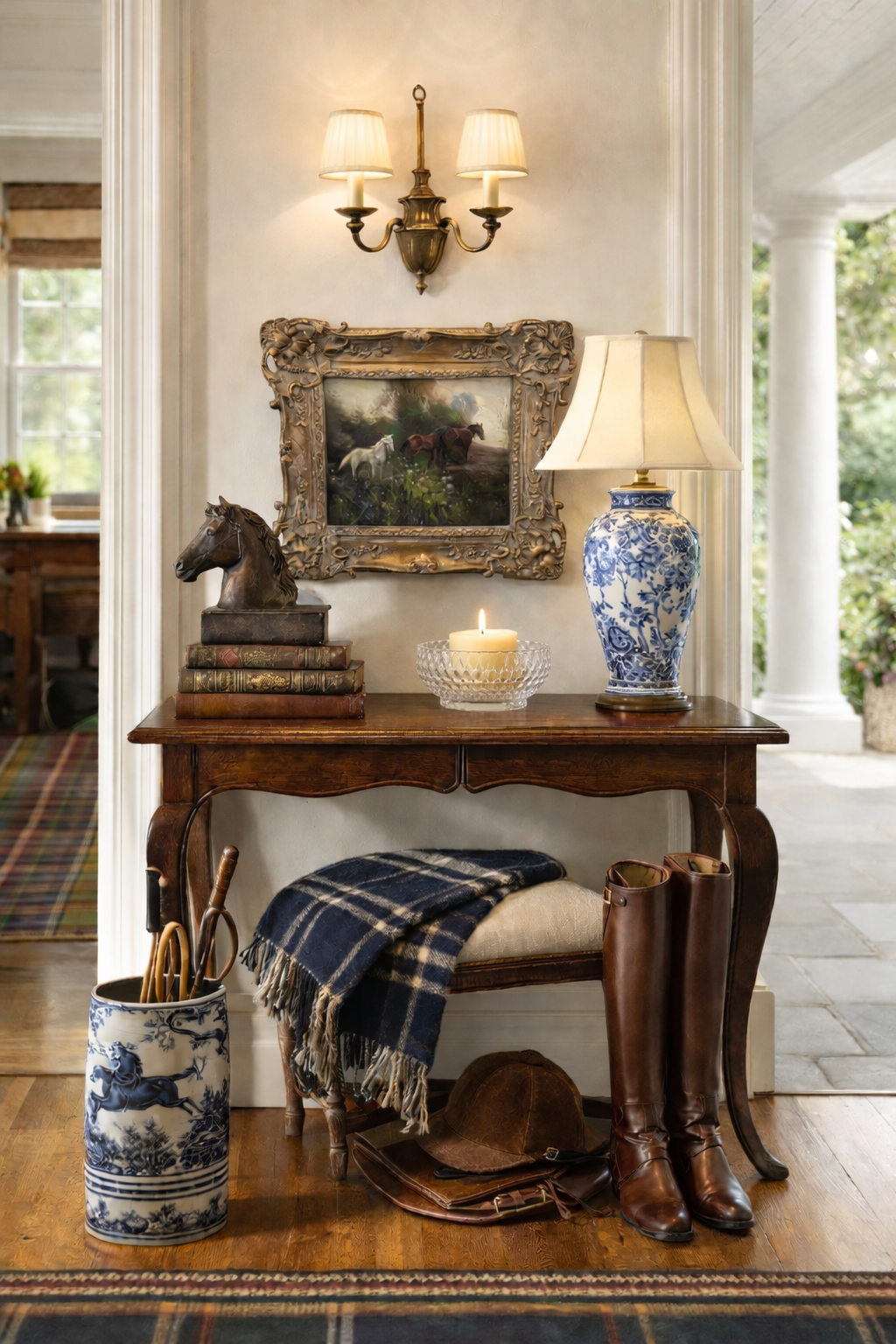 Style atop a mahogany console layered with leather-bound books, or hang within a study paired with brass lighting and dark wood finishes. It also works beautifully in a bedroom above a dresser for a refined English country focal point.