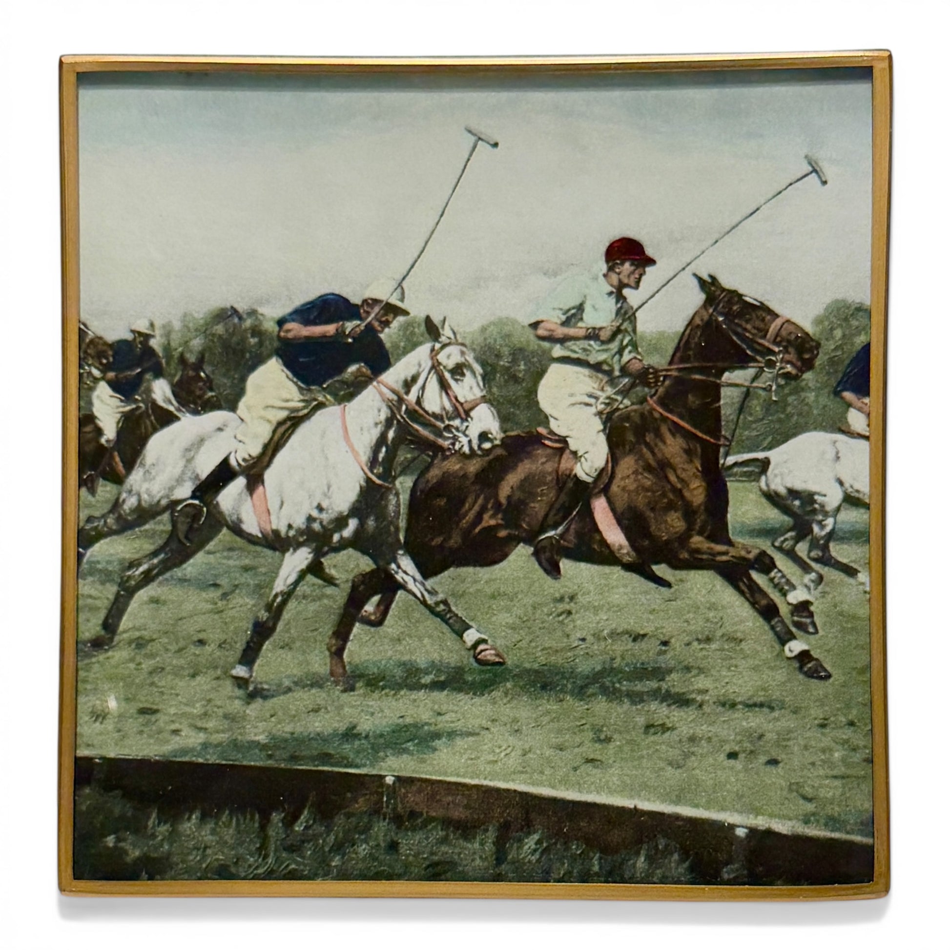 Vintage Polo Scene Glass Trinket Dish with Gold Trim